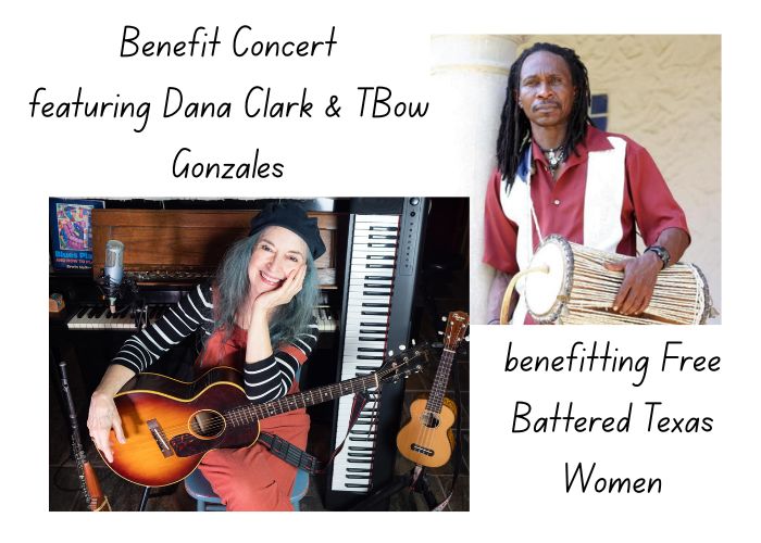 Join us for a benefit concert featuring musicians Dana Clark and TBow Gonzales. Admission by donation. All proceeds benefit Free Battered Texas Women, a non-profit organization who works to educate the public about survivors of abuse who were criminalized for acting under duress.